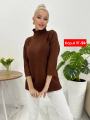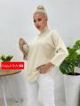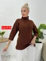 Кашемировый нежный свитер женский с приподнятой горлом,3/4 рукавами.