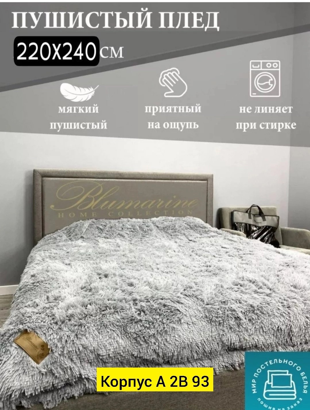 Меховой плед (плед-покрывало) пушистый blumarine оригинального качества.