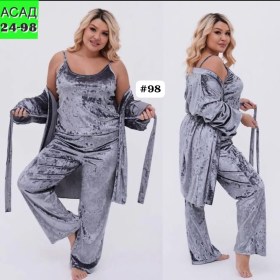 Женская костюм тройка новинкиВ комплекте топик халатштаныпоясЦена 1100рубТкань велюровыйРазмер 56 58 60 62 64 66