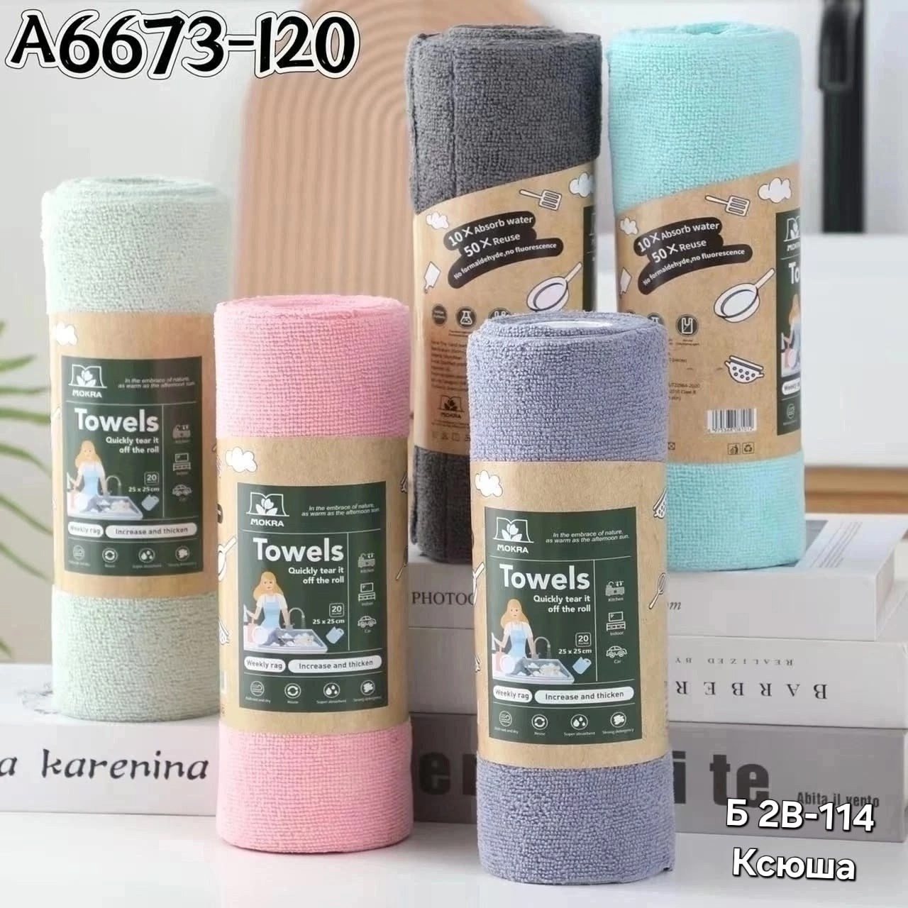 Универсальные салфетки для уборки из микрофибры в рулонах.