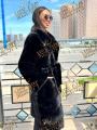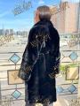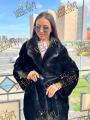 Шубка из меха европейской норки с английским воротником, длина 110 см, модель кимоно, цвет черный бриллиант.