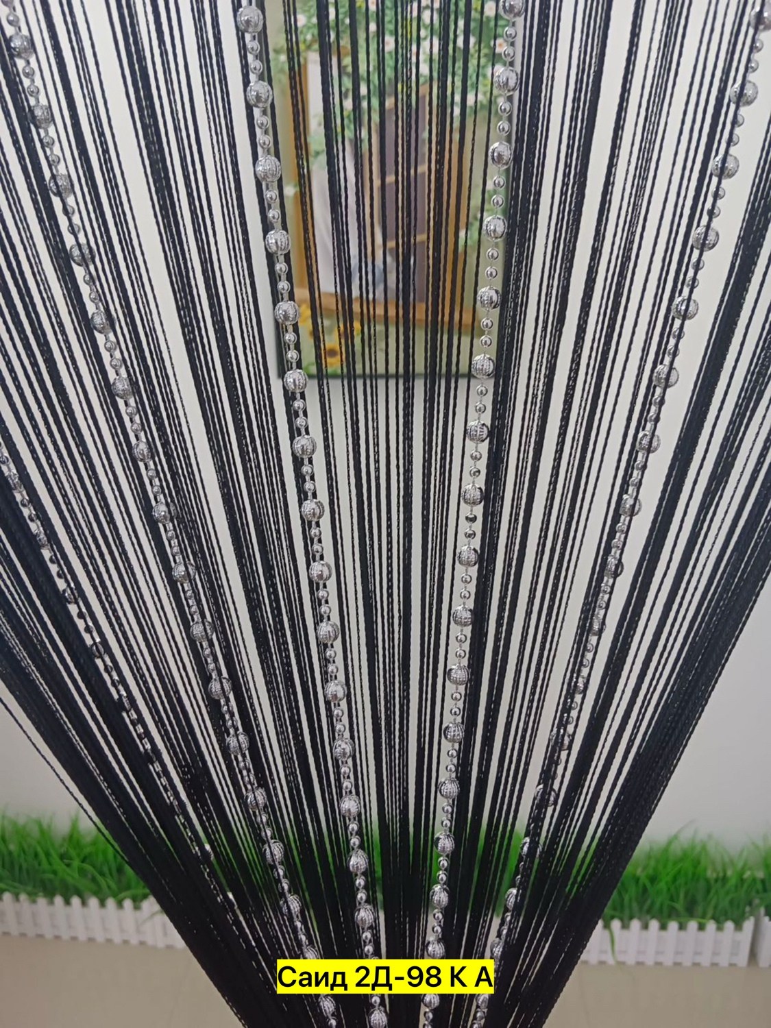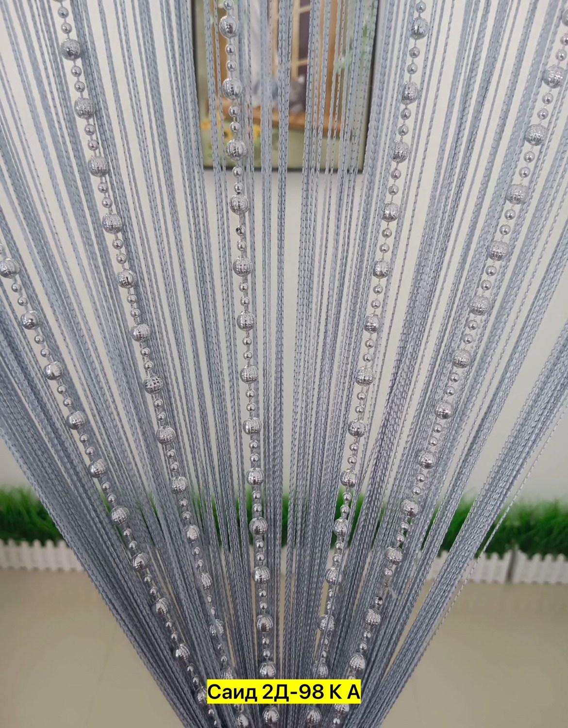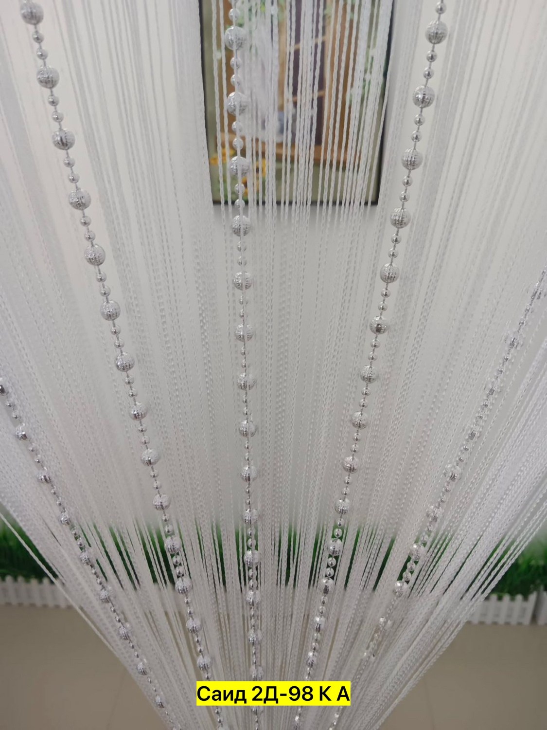 Нитяные шторы с кисея с бусами