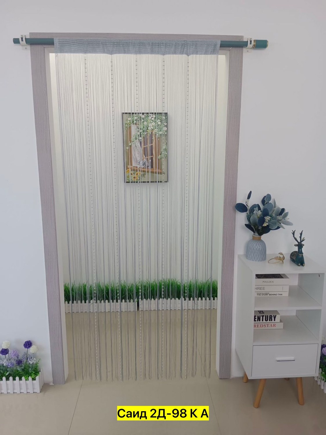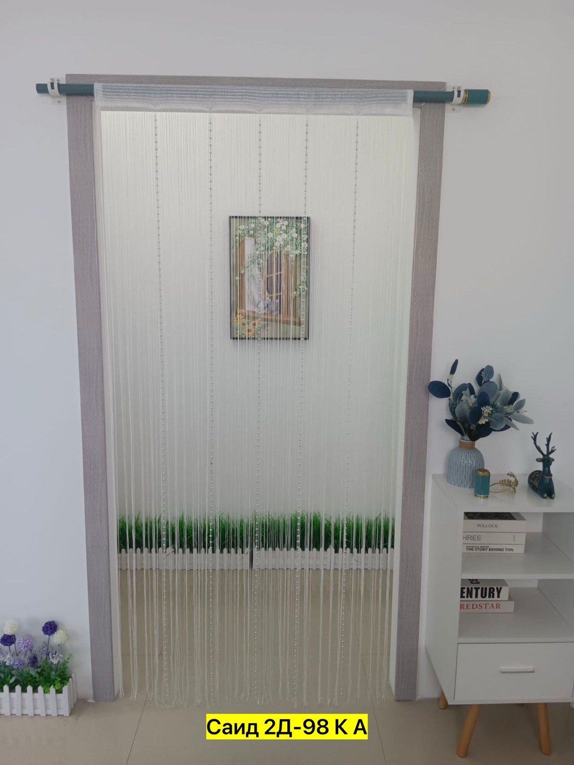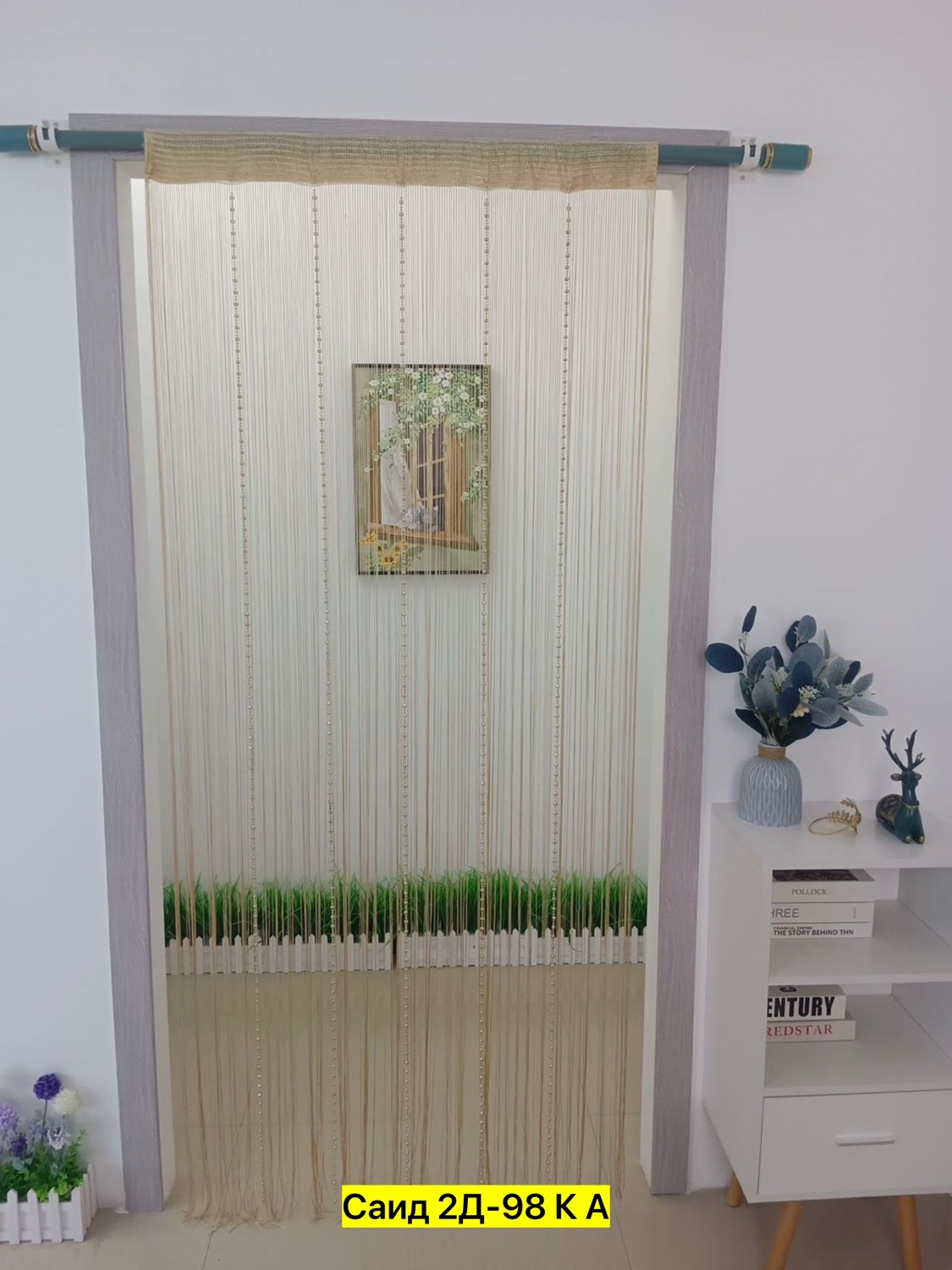Нитяные шторы с кисея с бусами
