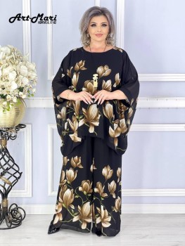 Нежный, легкий, воздушный костюм двойка мариэтта украшенный живописным цветочным принтом, создает ощущение легкости и женственности!.