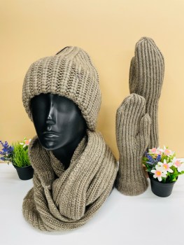 Комплект шапка с шарфом и варежками