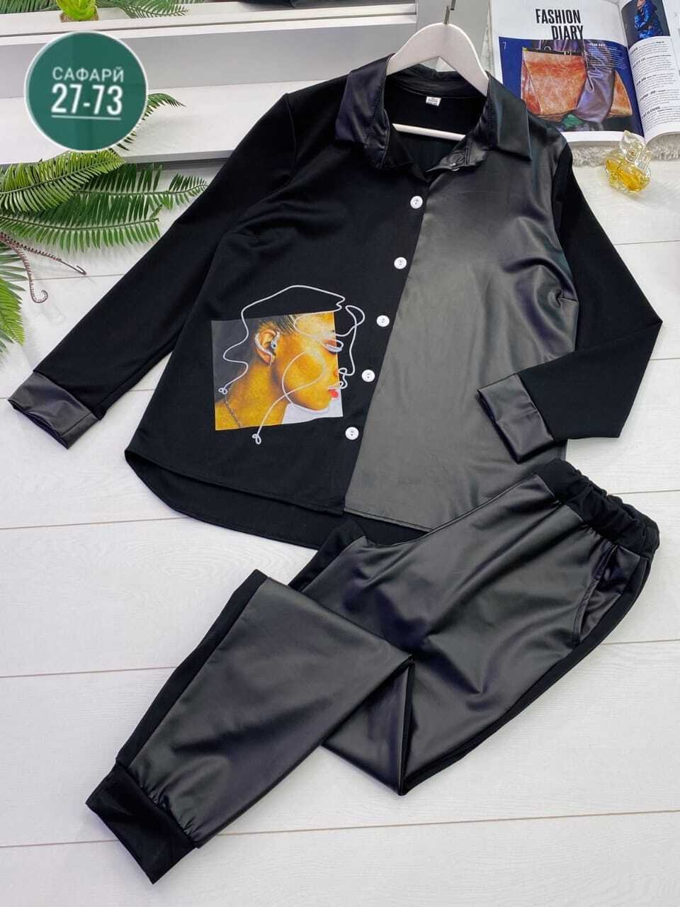 Нереально крутой костюм, который идеально впишется в ваш гардероб ткань: трикотаж, с эко кожа размер: 50 52 54 56 58 60длина: рубашка-75 см, брюки-100 см цена: 1100 руб.