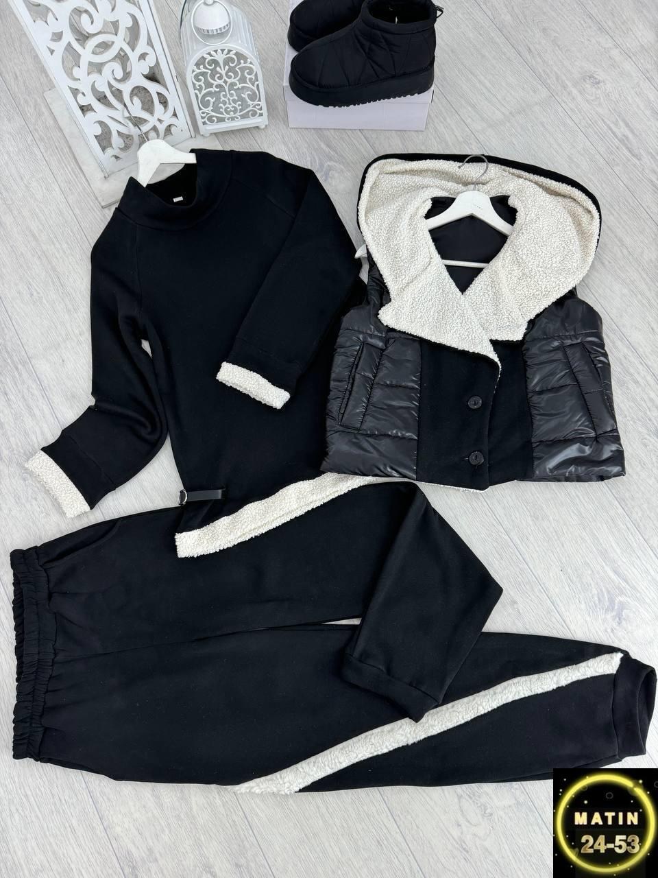 Тплый костюм - тройка, состоит из жилетки, худи и джоггеров цена 2000 ₽ткань флисжилетка плащевка с подкладкой размеры 48-50 52-54.