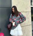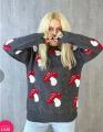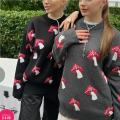 Свитер-туника вязаный в грибами оверсайз.