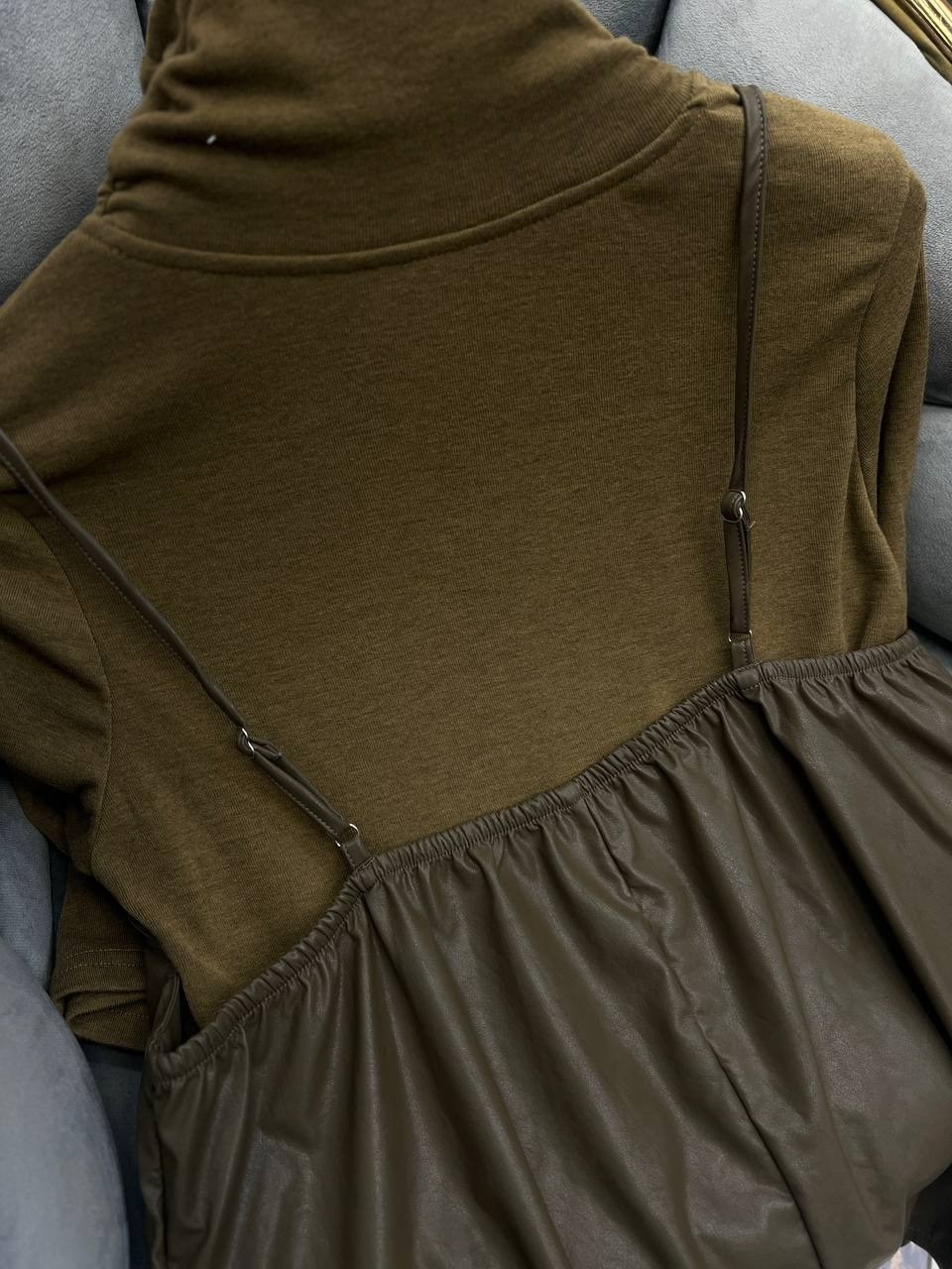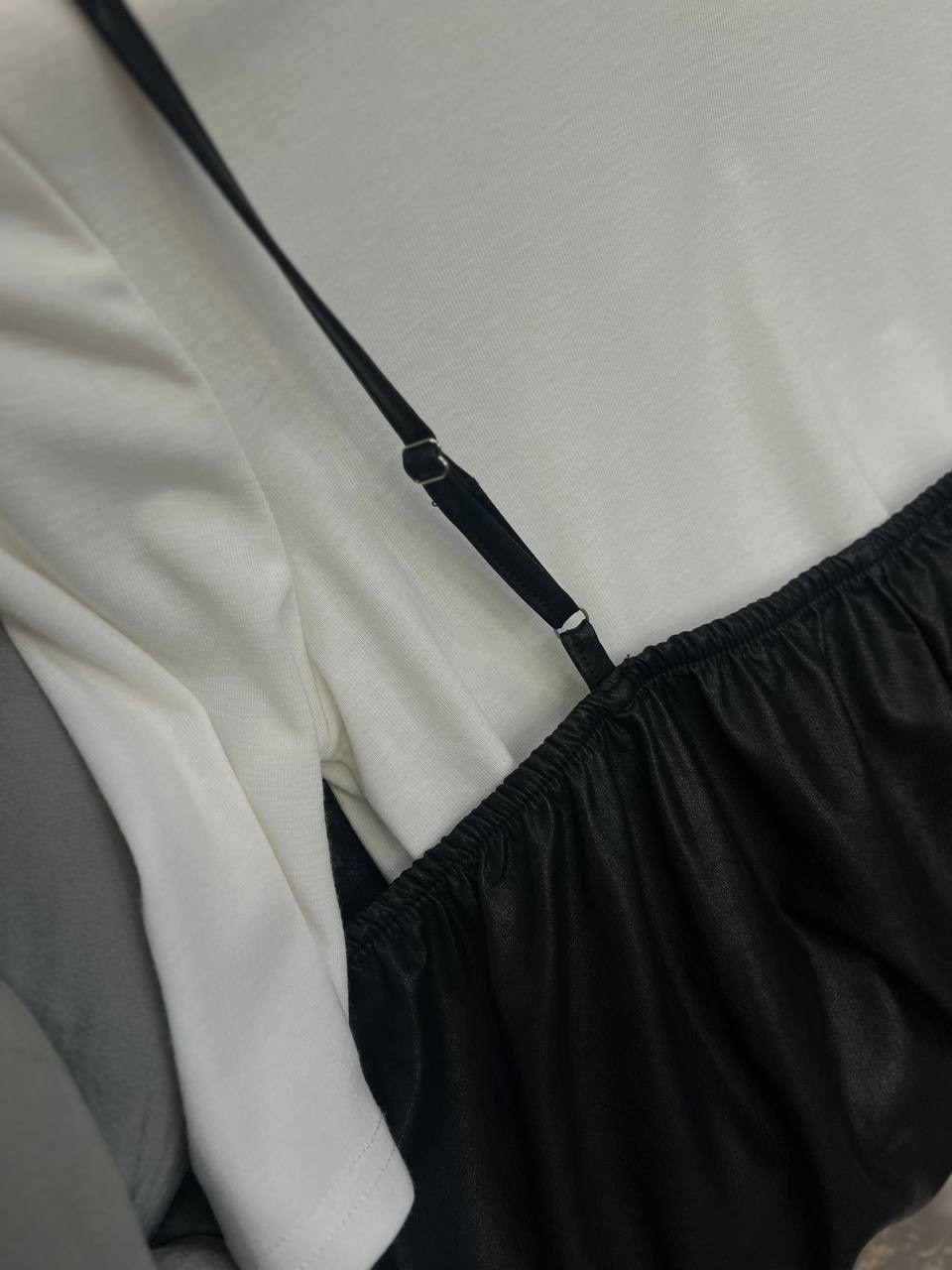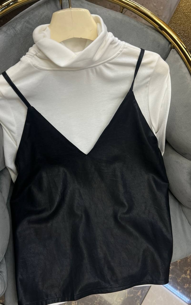 Американка-стильная и универсальная вещь, изюминку придает топ из эко-кожи.