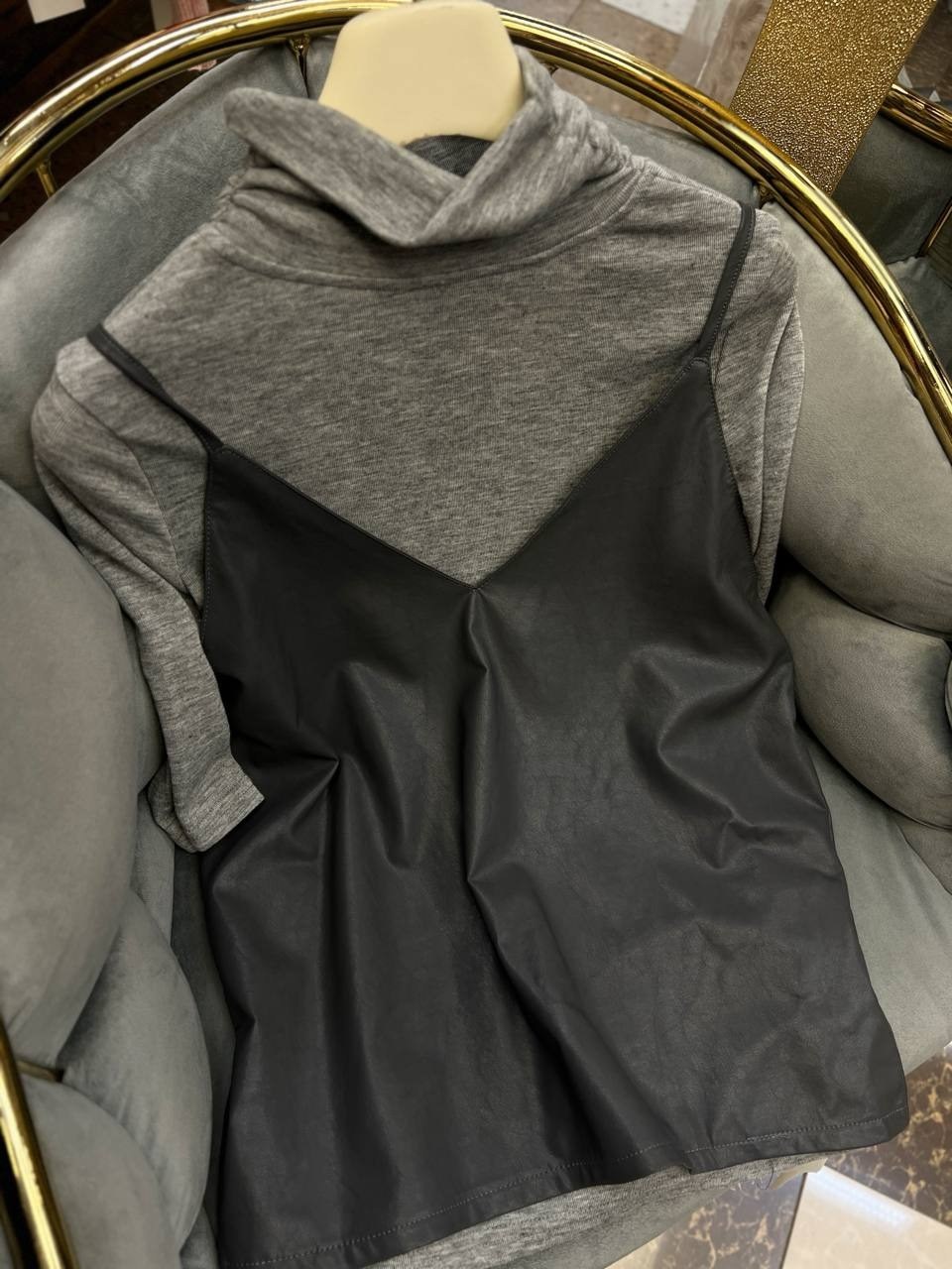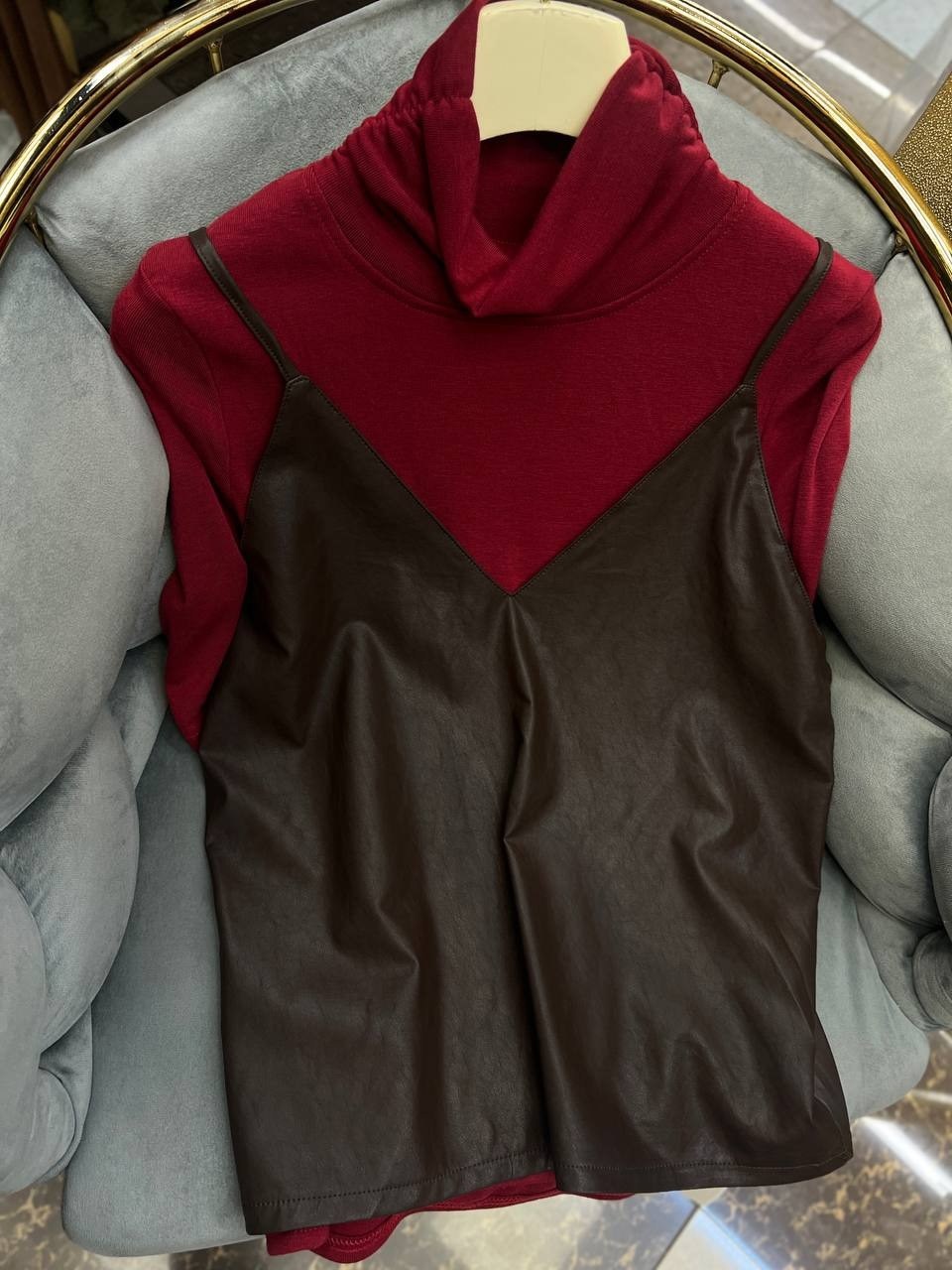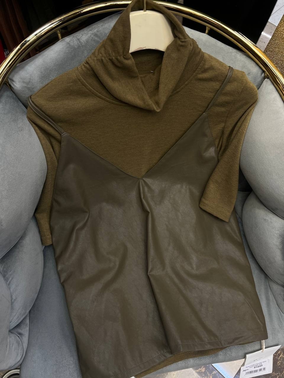 Американка-стильная и универсальная вещь, изюминку придает топ из эко-кожи.