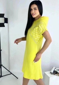 Интересное платье с капюшоном с акцентом на рукава Ткань: хлопок-лен.