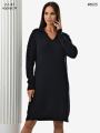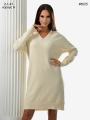 Тплое вязаное платье туника с v образным вырезом и воротником Мягкое и приятное к телу.