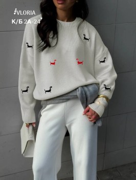 Свитер с вышивкой таксы с комфортным кроем-должен быть у каждой Это необходимый предмет аутфита с которым можно сочетать всe Декорирован невероятно стильной вышивкой в виде милых такс!.