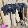 Мягкая плюшевая ткань и джинсовые вставки.