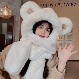 Милая шапка с ушками медведя шарф перчатки 3в1 зимняя теплая кепка с узором женская ветрозащитная плюшевая шапка шарф.