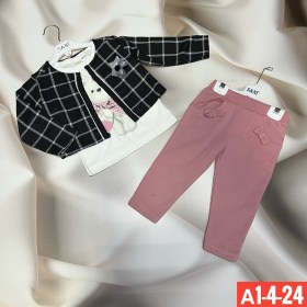 Комплект 3в1Размер: 74-80-86-92Цена шт: 900Продажа от 1штПроизводство: турцияОписание: кофточка длинный рукавом, брюки ветровка.