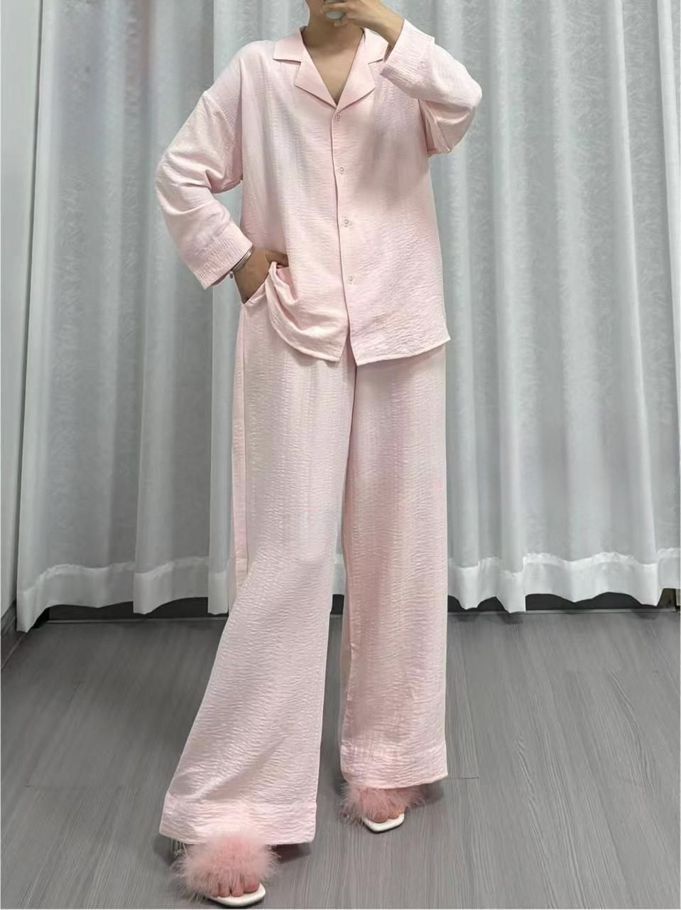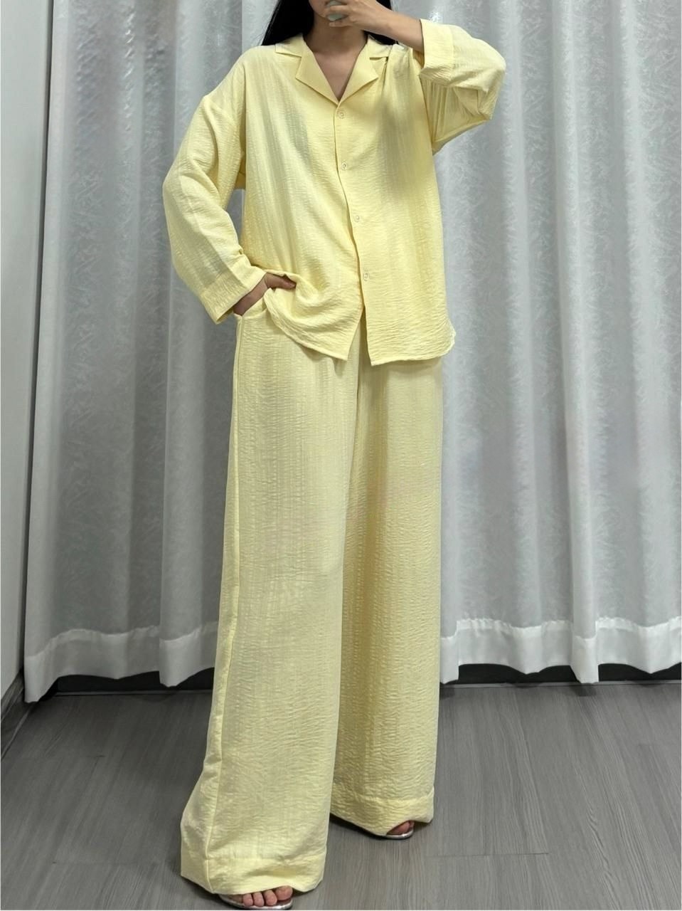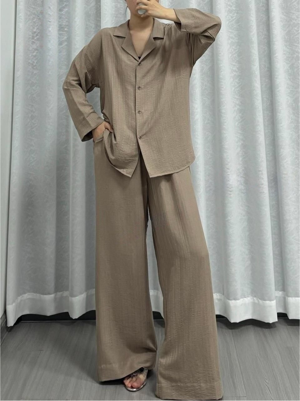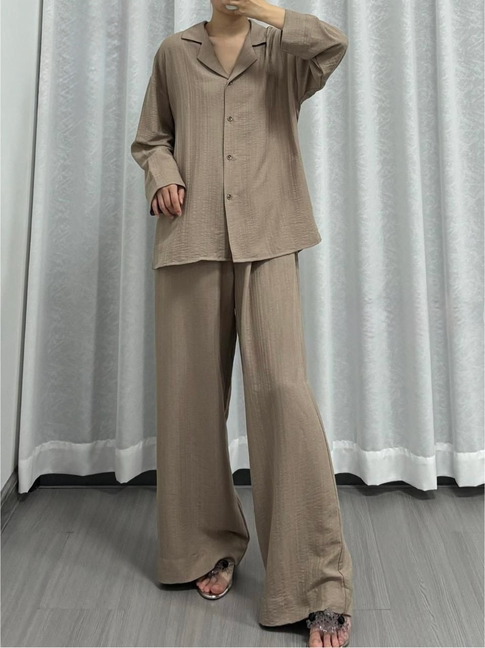 Благородные оттенки подчеркивают естественность, а фактурная жатка добавляет глубины и изысканности.