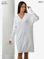 Тплое вязаное платье туника с v образным вырезом и воротником Мягкое и приятное к телу.