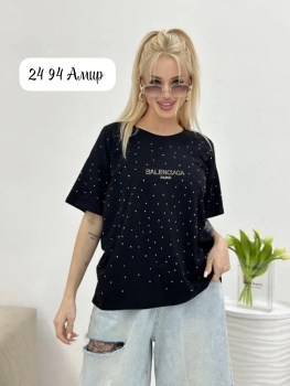 Чрные и белые футболки прямого кроя с красвым стилым камушками.