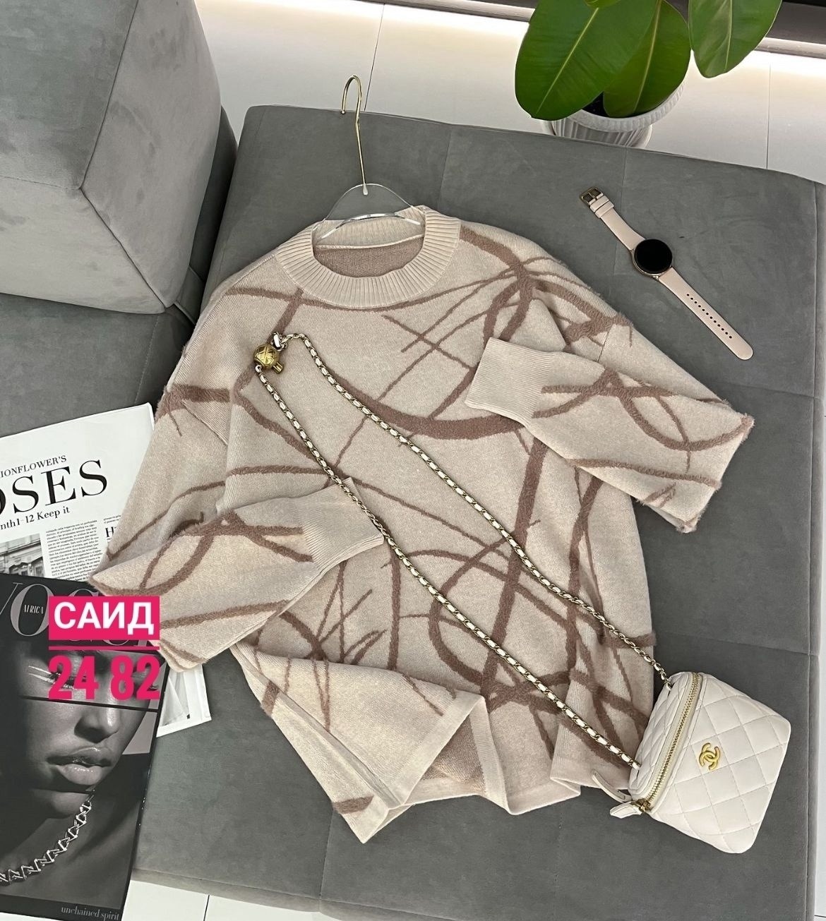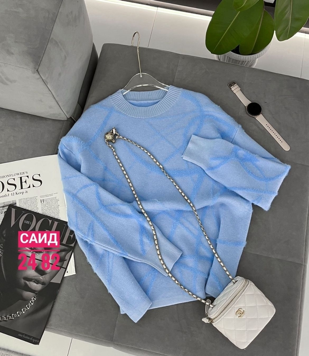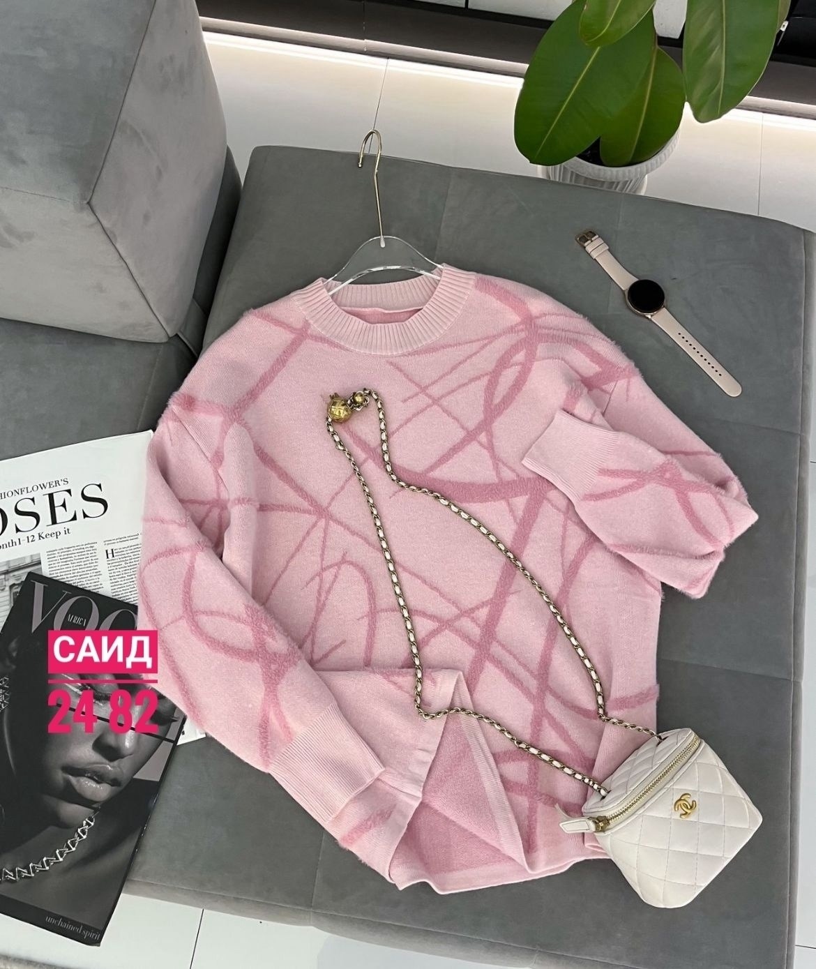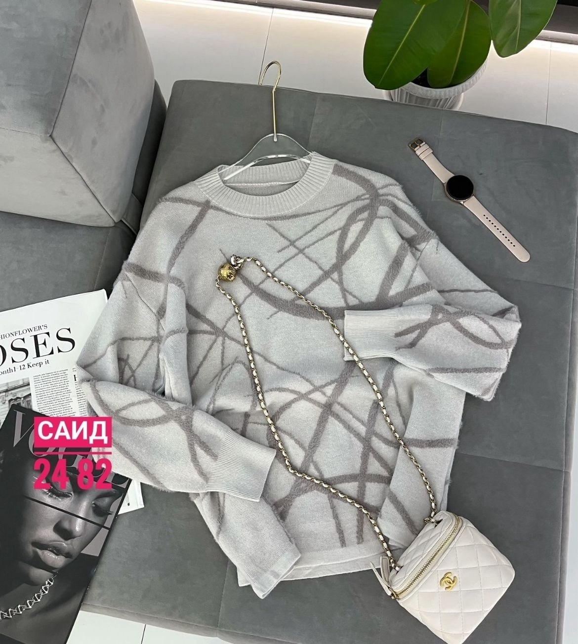 Стильный модный вязаный свитер