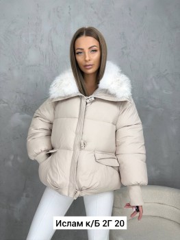 Куртки, пуховики женские на молнии и пуговицы с длинным воротником и мехом на воротнике.