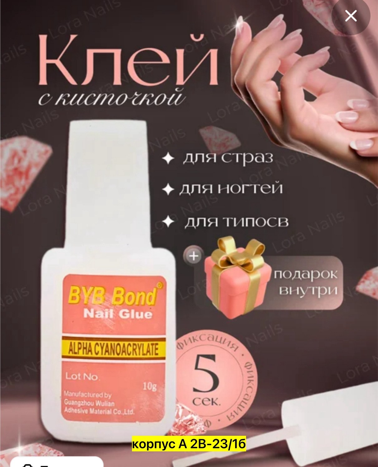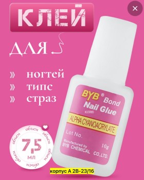 Клей для ногтей byb bond для типсов и страз 10 мл прозрачный.