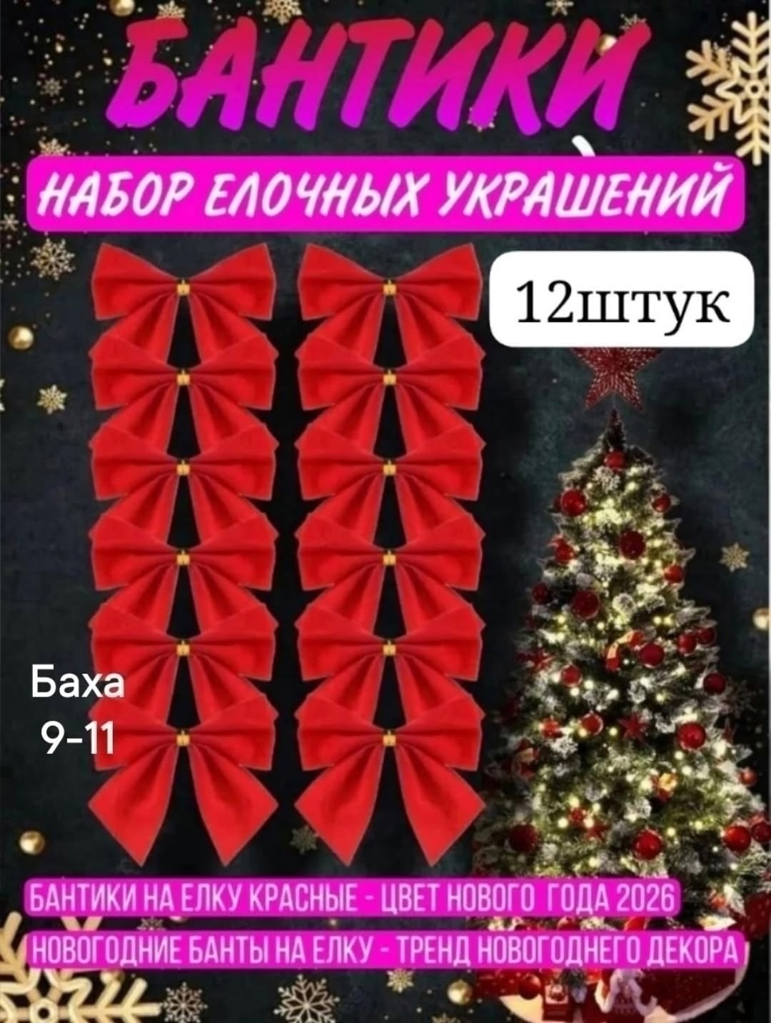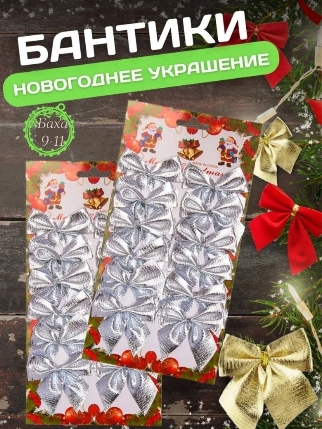 Елочные игрушки бантики новогодние набор.