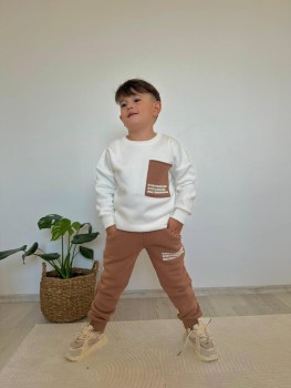 Белый коричневый карман надпись