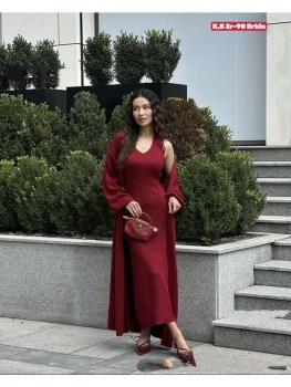 - дизайн:облегающее платье с рифленой текстурой и длинный кардиган.