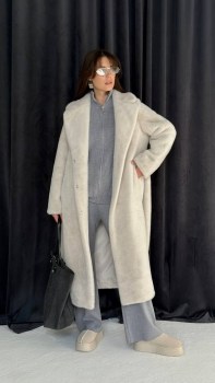 Элегантная шуба длины макси,свободного кроя с объемным воротником и комфортными рукавами, выполненная из теплой эко-норки.
