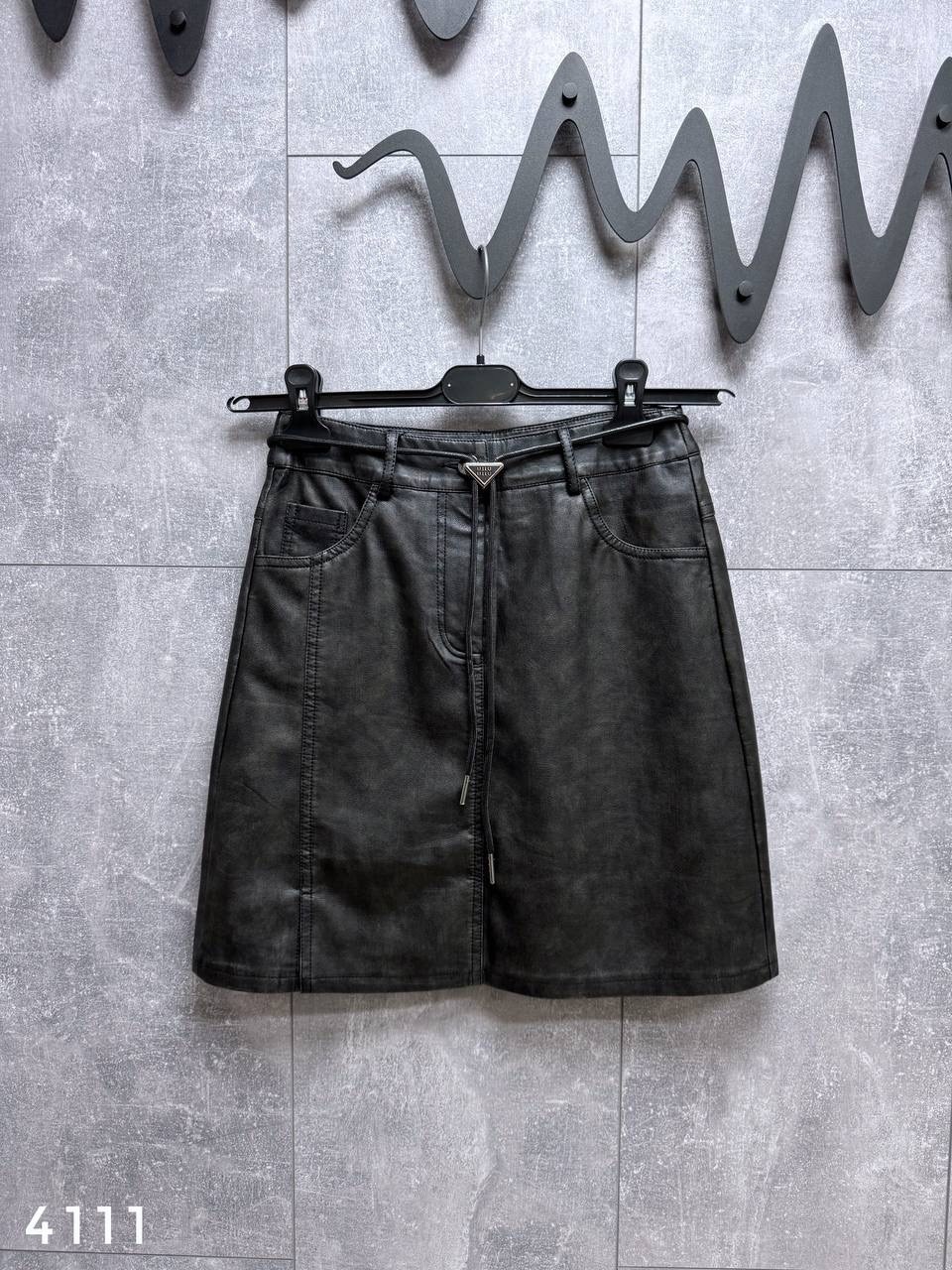 Юбка с небольшим разрезом из матовой экокожи Ремешок в комплекте Длина 46см / талия от края до края у 36 маркировки - 34см Арт 4111.