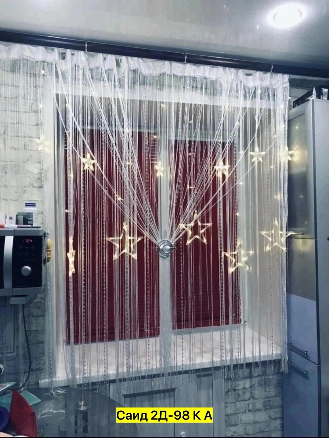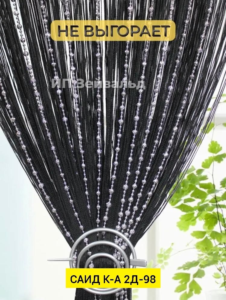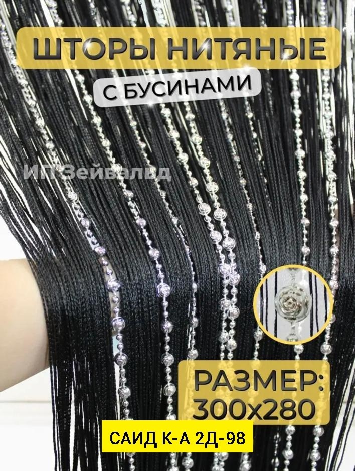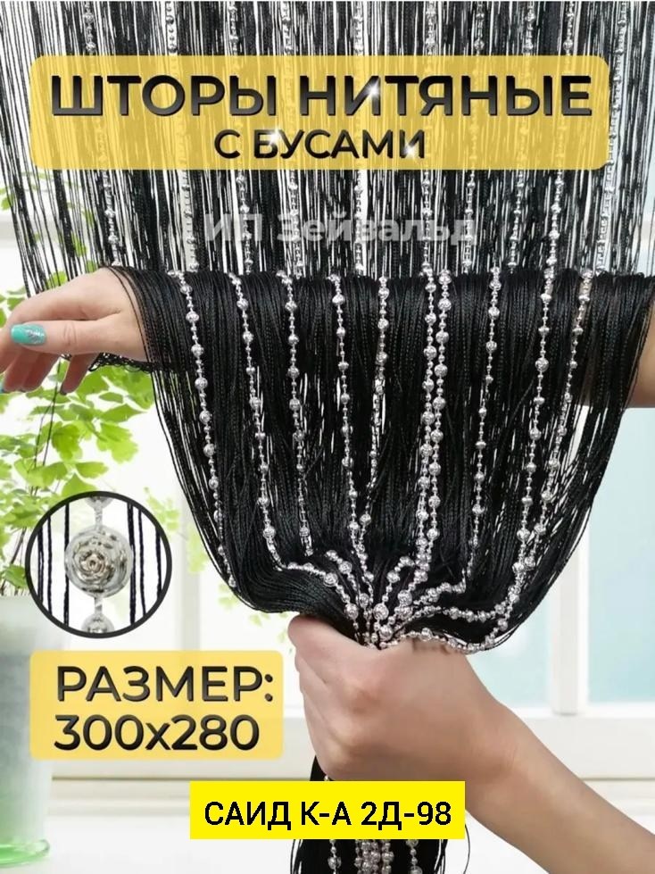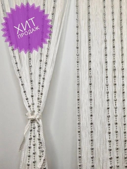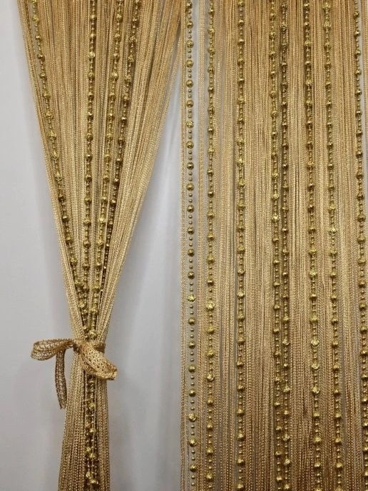 Нитяные шторы с кисея с бусами