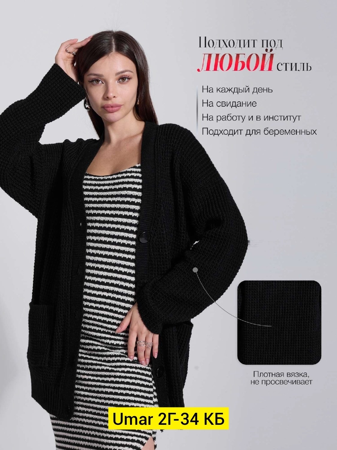 Кардиган изготовлен из мягкой и теплой шерсти, которая сохраняет тепло в самые холодные дни Кардиган женский доступен в однотонном дизайне, что делает его универсальным и легко сочетаемым с разн.