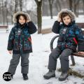 Утепленная детская куртка с принтом для мальчиков выполнена из прочной водонепроницаемой тканьи мембрана, что обеспечивает надежную защиту от дождя и снега В качество подкладки используется стандартная ткань, а утеплитель холофайбер.