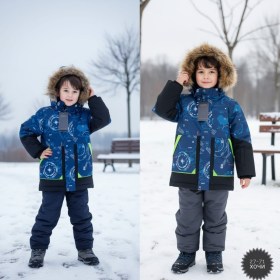 Утепленная детская куртка с принтом для мальчиков выполнена из прочной водонепроницаемой тканьи мембрана, что обеспечивает надежную защиту от дождя и снега В качество подкладки используется стандартная ткань, а утеплитель холофайбер.