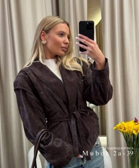 Стильная коричневая косуха с декоративной шнуровкой акцентная вещь на осень эффектно смотрится как с платьем, так и с базой.