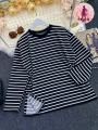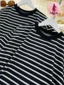 Просторный чрный свитшот в белую тонкую полоску.
