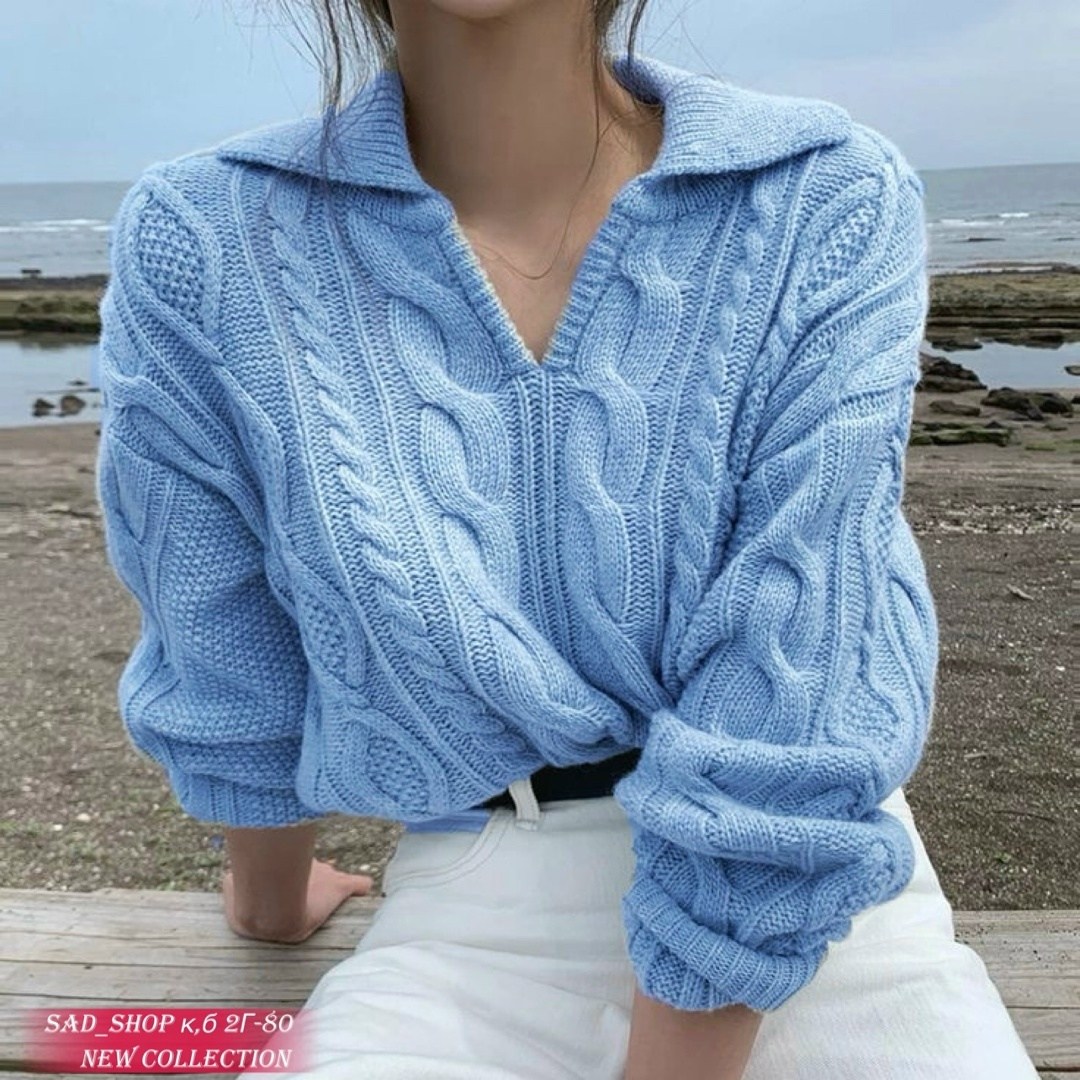Женские осенне - зимний свитер элегантный дизайн толстого теплого вязание пуловер.