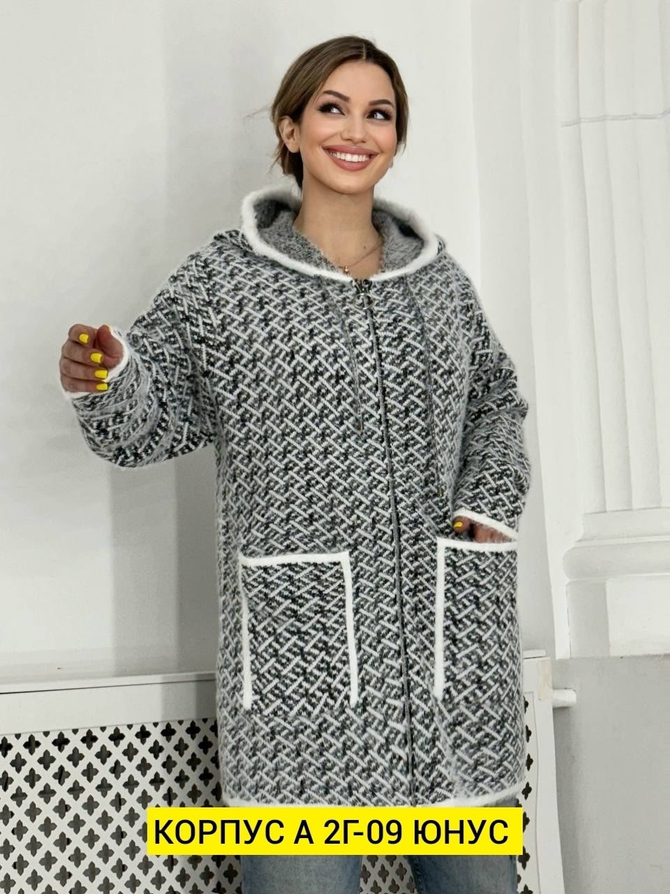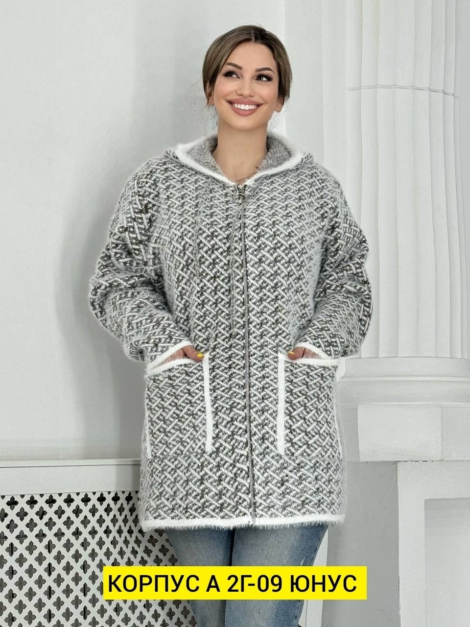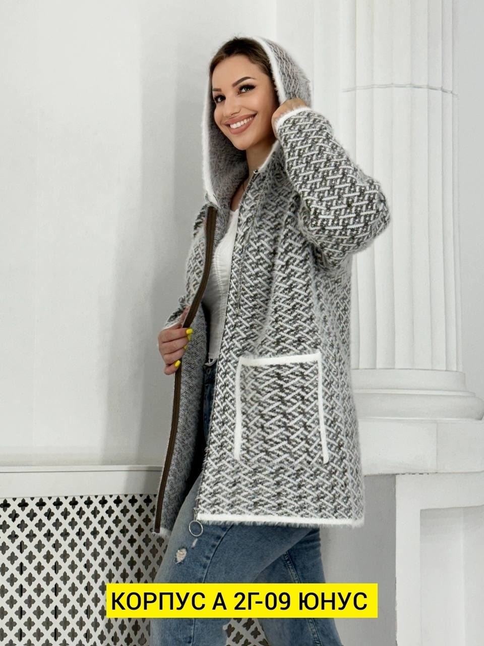 С двумя карманами и капюшоном, дополнит любой образ.