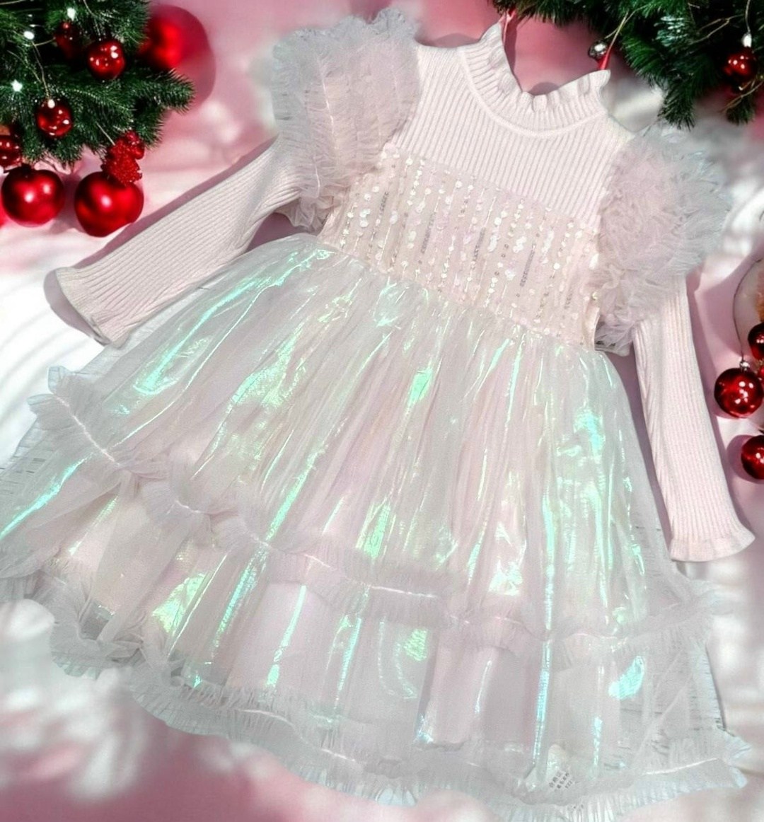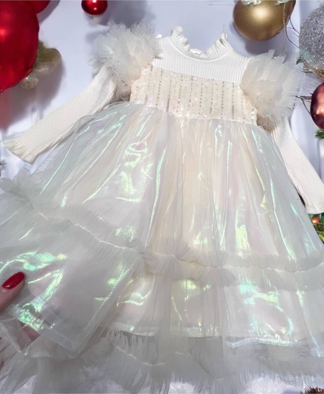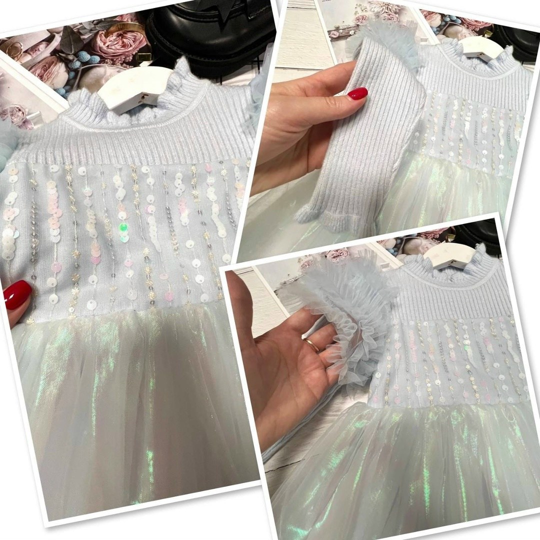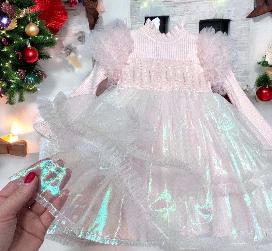 Верх платья лапша-кашемир,на юбочке неоновый фатин,сверкает и переливается подклад хлопокрозовый,шампань и голубой.