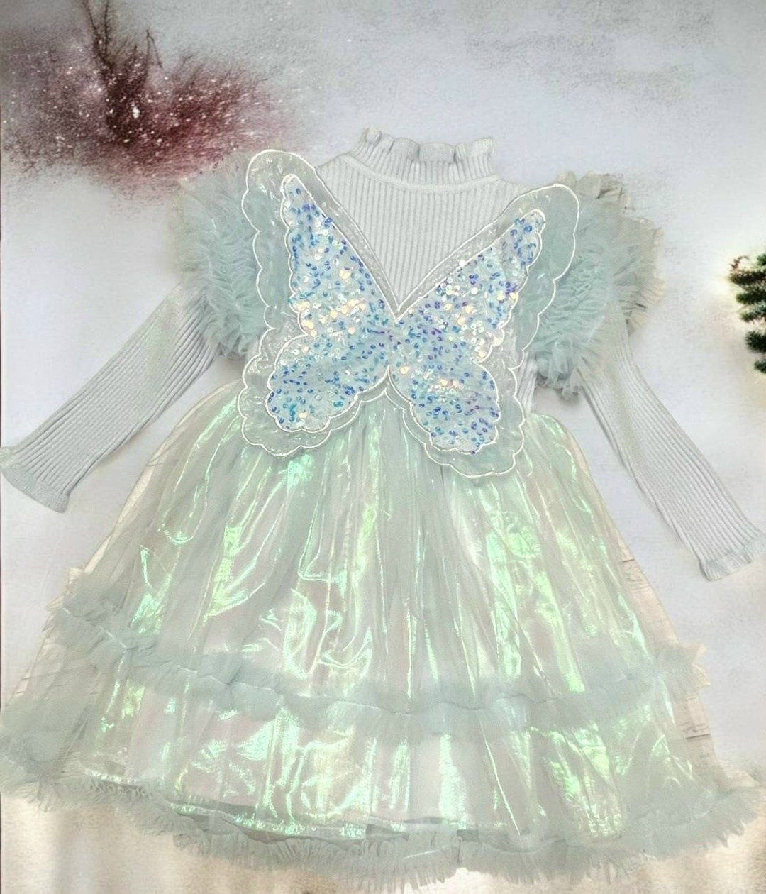 На спинке пристгиваются крылья из паеток.