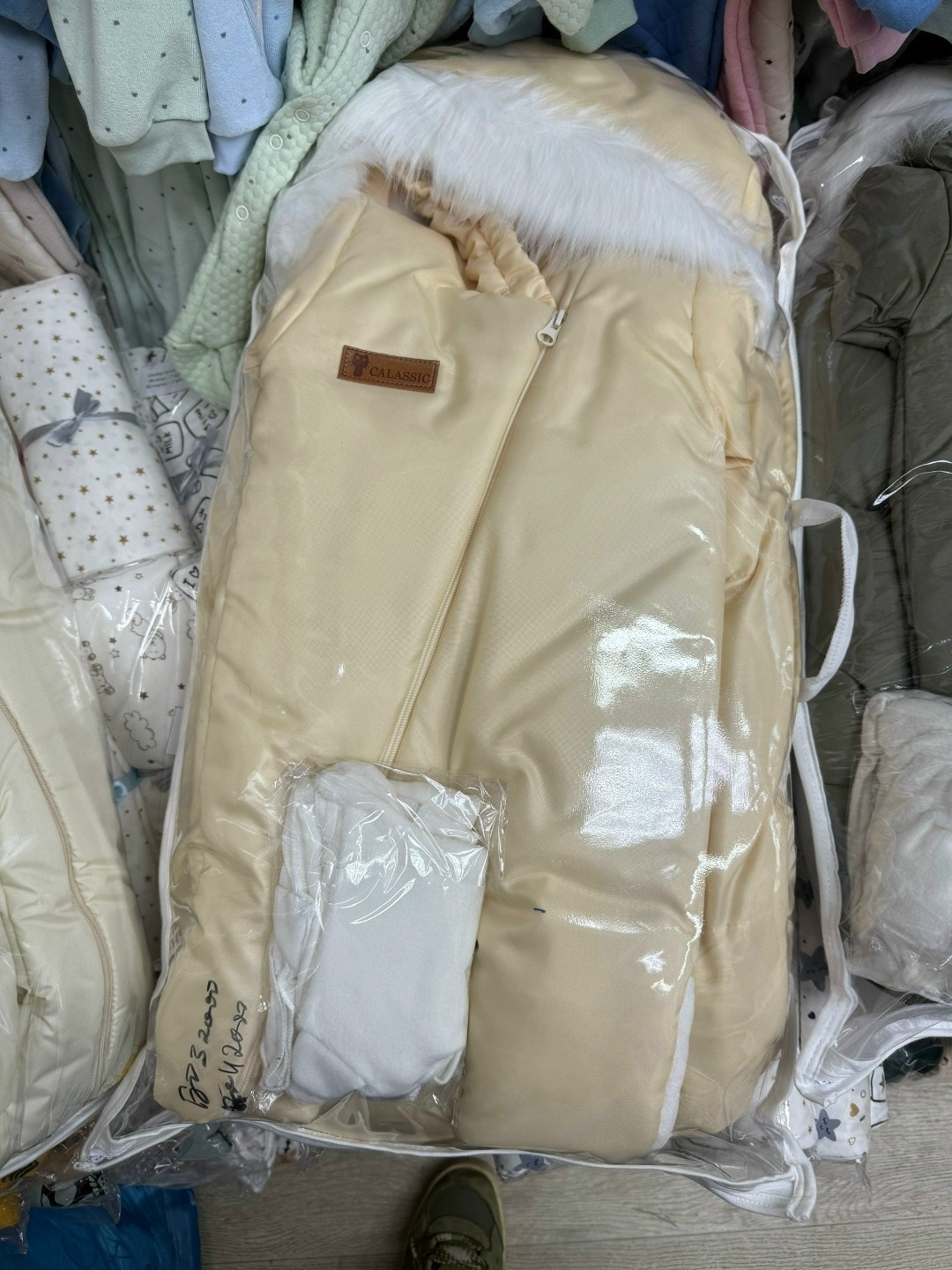 Конверт на овчине с двухсторонней молнией, тплый, уютный, с наполнителем из синтепона.