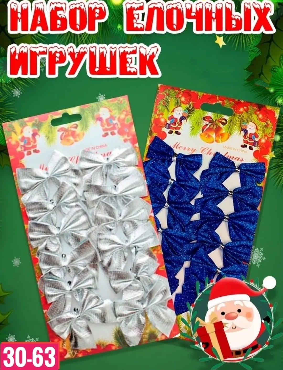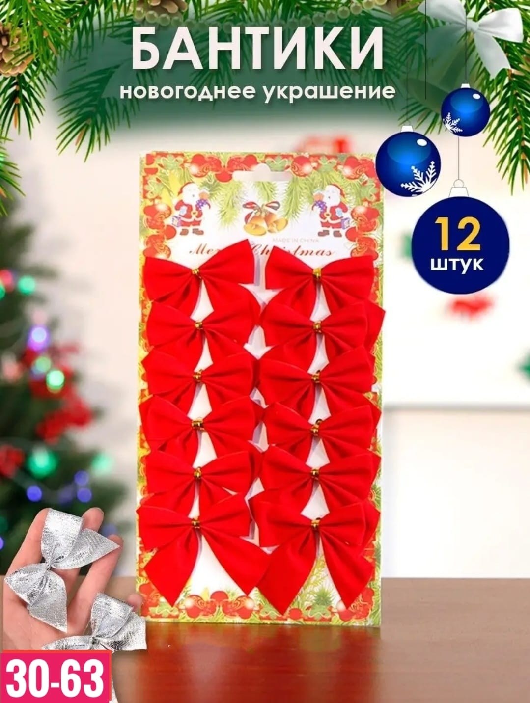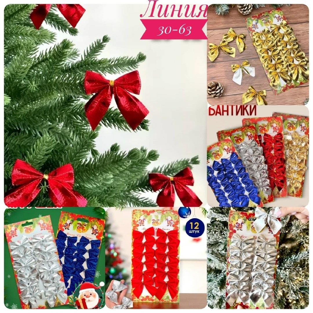 Елочные игрушки бантики новогодние набор 2026.