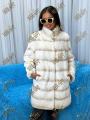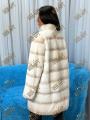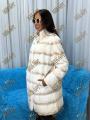 Шубка из натурального меха бобрика, воротник стойка отделан норкой, длина 90 см.