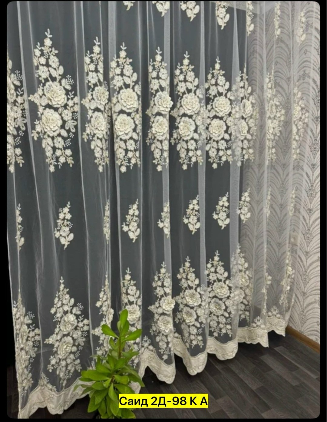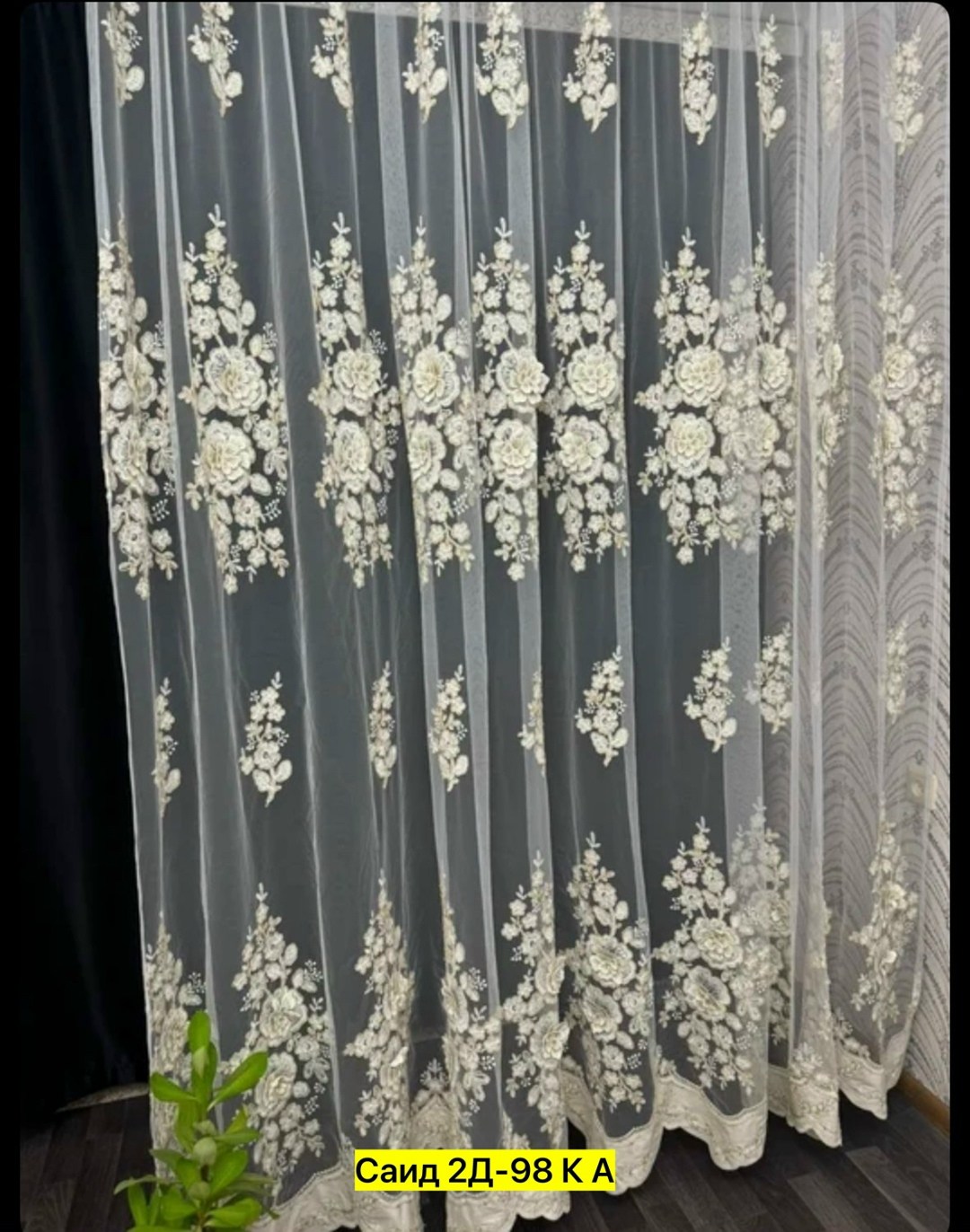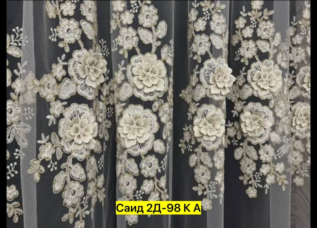 Тюль с рисуноком вышивкой на сетке.