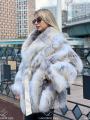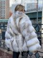 Шикарная шуба из меха лисицы с английским воротником 75 см длина.