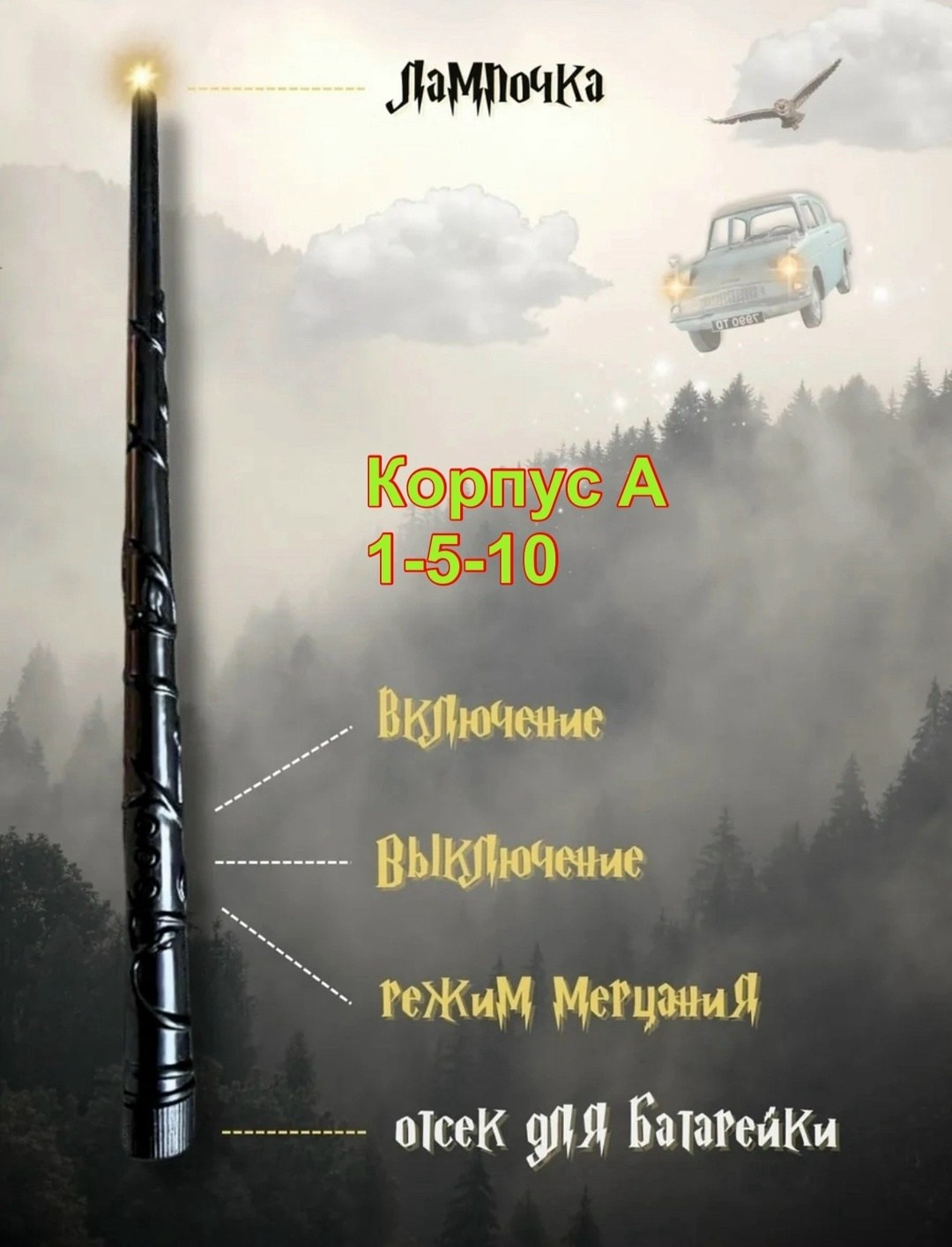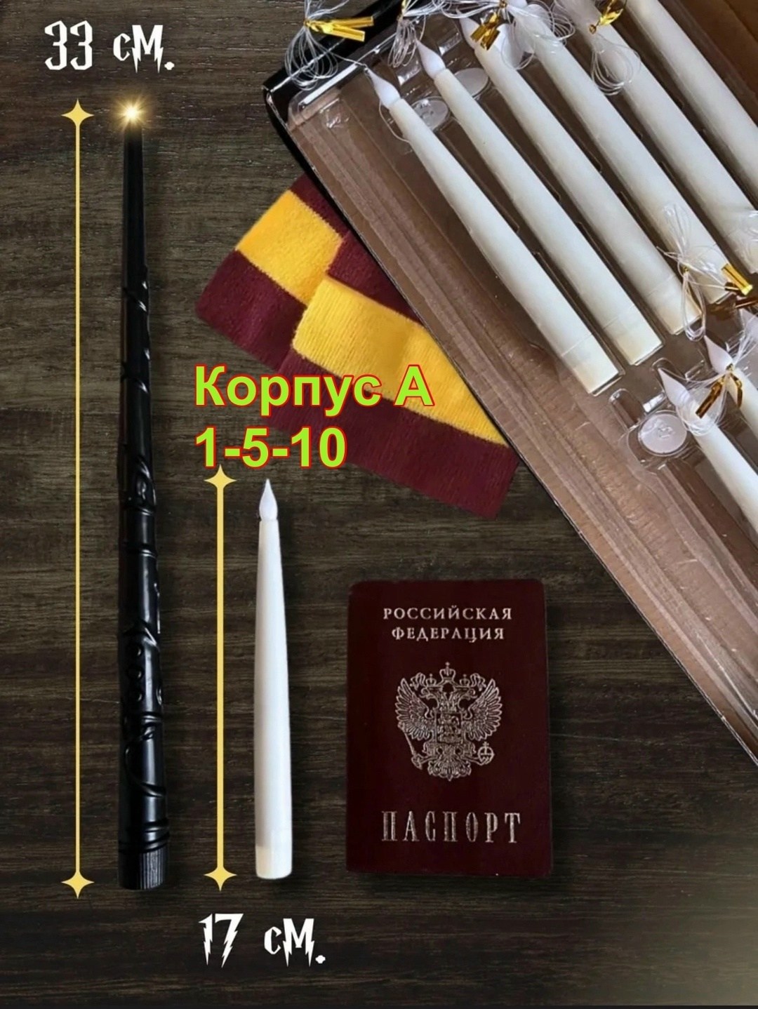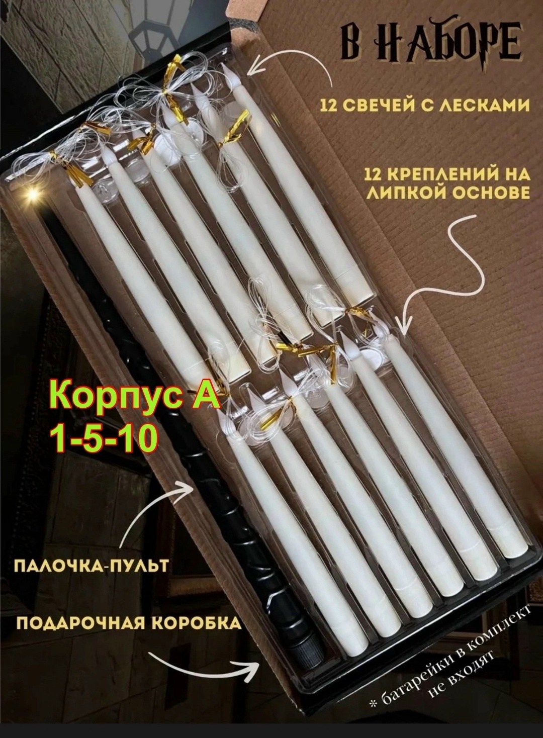 В подарочный набор свечи гарри поттер с палочкой входят 12 реалистичных светодиодных свечей, волшебная палочка, которая служит пультом дистанционного управления, а также 12 крючков для крепления С помощью палочки вы сможете легко включать и выключать режим горения, просто произнеся заклинание lumos Эти новогодние магические свечи на пульте идеально подойдут для декорирования тематических вечеринок, фотозон, хэллуин или просто для создания волшебной атмосферы и уюта в вашем интерьере Палочка гарри поттера со свечами вам обязательно понравится.