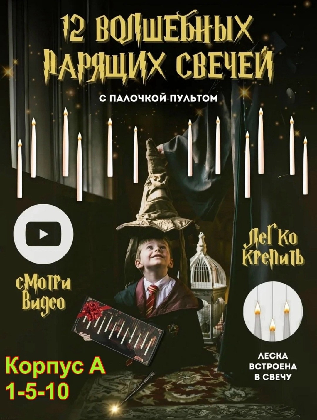 Погрузитесь в захватывающий мир магии хогвартса с нашим уникальным набором парящих светодиодных свечей Эти декоративные подвесные свечи на батарейках (не входят в комплект), создадут незабываемую атмосферу в вашем доме Мягкое свечение напоминает настоящее пламя, а эффект парения достигается благодаря подвешиванию свечей на лесках, что позволяет использовать их как новогоднюю гирлянду, свечи на елку или украшения для потолка Реалистичный набор светодиодных свечей для декорирования дома добавят магии вашему дому.