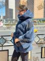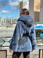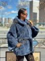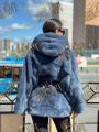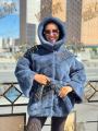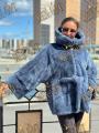 Шубка из меха европейской норки с капюшоном, длина 75 см, модель кимоно, цвет джинса.