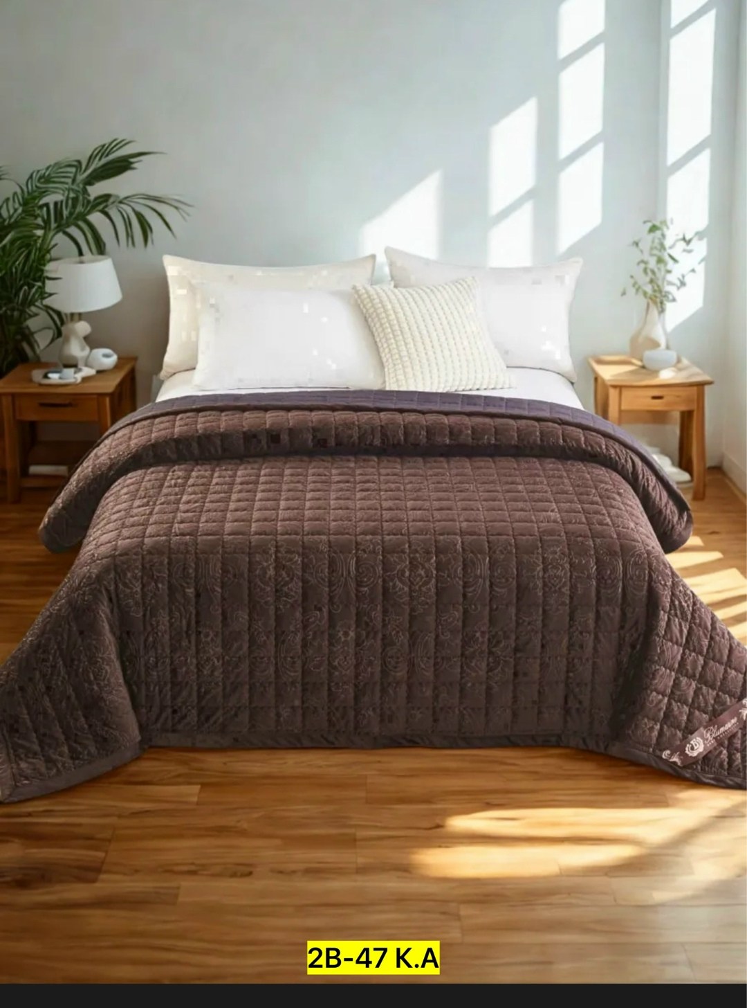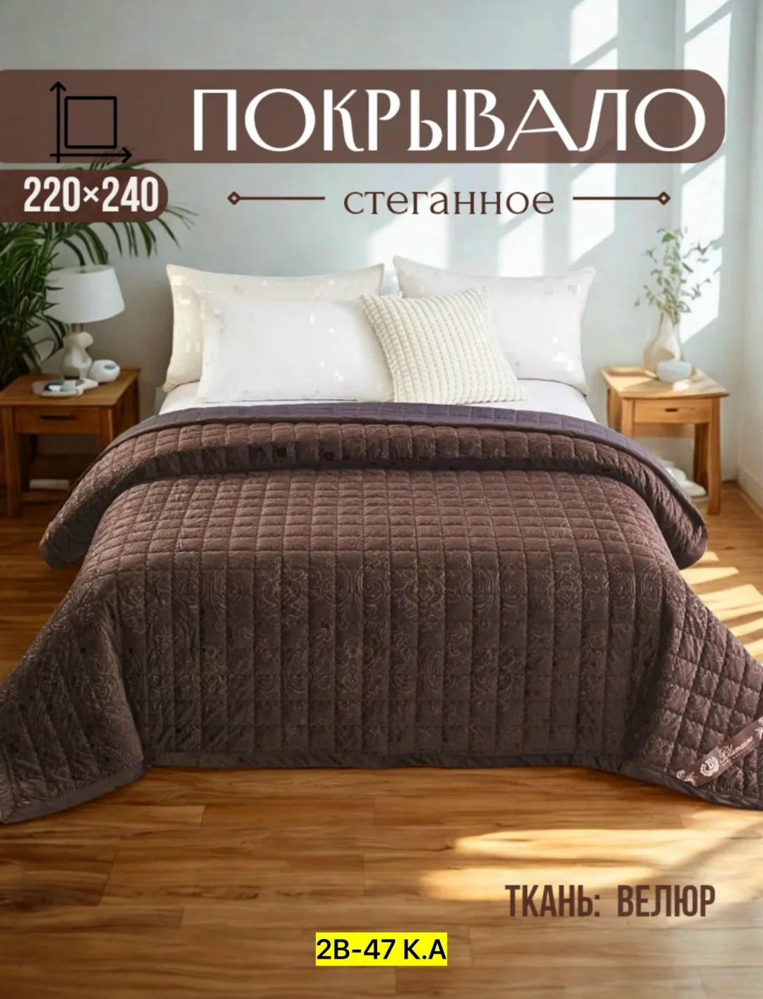 Покрывало на кровать 220х240см, стеганое и выполнено из велюрового хлопка Это идеальное рещение для создания уютной атмосферы в вашей спальне Благодаря своим большим размерым, оно полностью покроет вашу кровать, защищая ее от пыли и грязи.